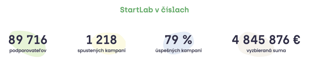 Najväčšou slovenskou crowdfundingovou platformou je StartLab, ktorý bol spustený v marci 2015 a zameriava sa na verejnoprospešné projekty.