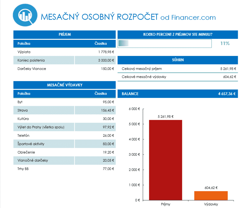 Naša intuitívna šablóna na mesačný rozpočet vám pomôže so všetkým potrebným. Stačí zadať svoje najčastejšie príjmy a výdavky. Potom hneď uvidíte, koľko mesačne zarobíte a miniete. Takýto postup opakujte každý mesiac.