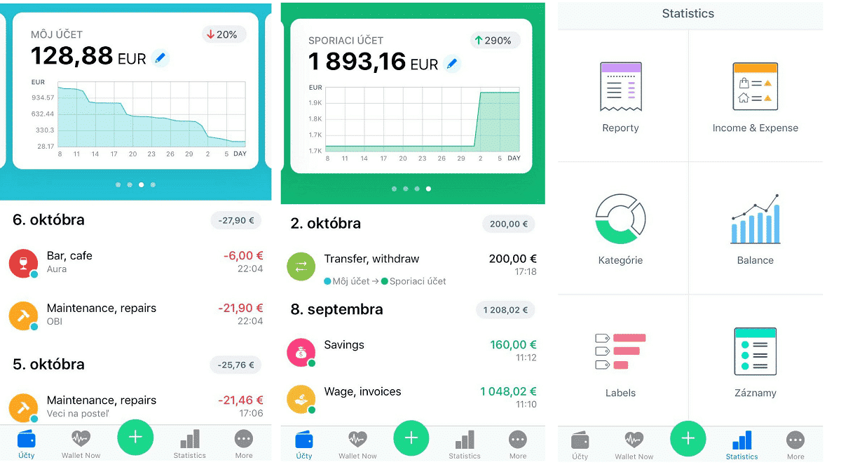 Druhá v poradí je česká aplikácia Wallet, ktorú si môžete stiahnuť bezplatne ako na Android, tak aj na iOS. Má však aj platený Premium účet za 15 € ročne, ktorým dostanete prístup k všetkým funkciám. Avšak aj ponuka bezplatnej verzie toho obsahuje viac, než dosť na to, aby ste dokázali svoje financie udržať pod kontrolou.