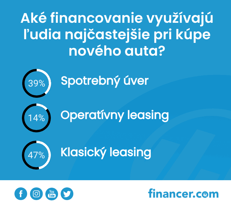 Ich využívanie je pritom na veľmi podobných hodnotách, zatiaľ čo financovanie na leasing volí približne 47 % ľudí, spotrebný úver 39 %.