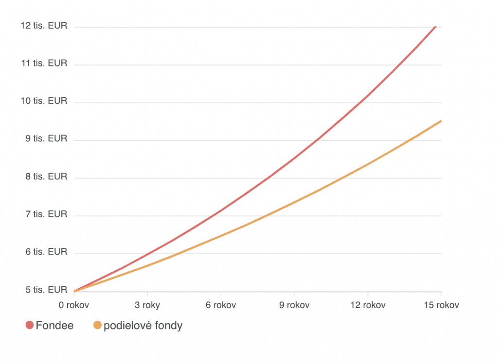 V porovnaní s klasickými podielovými fondmi má Fondee výrazne nižšie poplatky. Spoločnosť si za svoje služby účtuje iba manažérsky poplatok, ako aj skôr symbolický poplatok za správu ETF fondu.