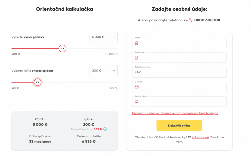 Pokiaľ ste s uvedenými hodnotami spokojní, môžete vyplniť krátky formulár s osobnými údajmi, ako je meno, priezvisko, telefónne číslo, e-mail a rodné číslo. Uvedené údaje odporúčame najskôr skontrolovať.