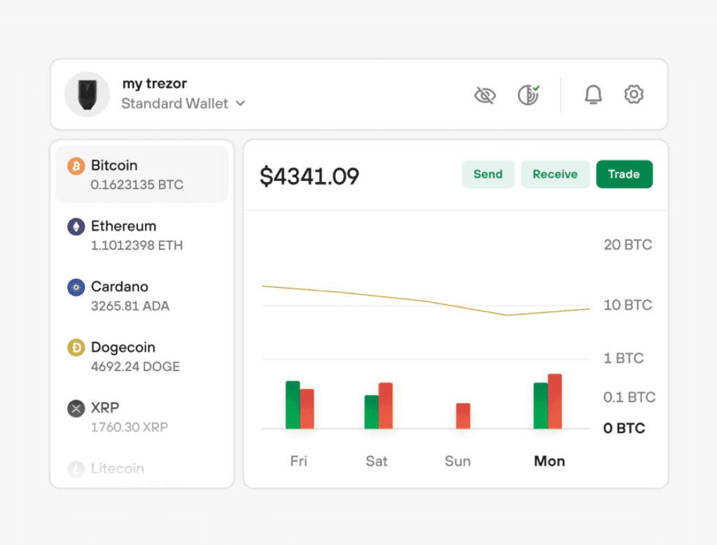 S podporou 8 000+ kryptomien a cenovým rozpätím modelov od 59 € do 179 € si vyberie každý. Jednoduché používateľské rozhranie Trezor Suite zvládne aj začiatočník.