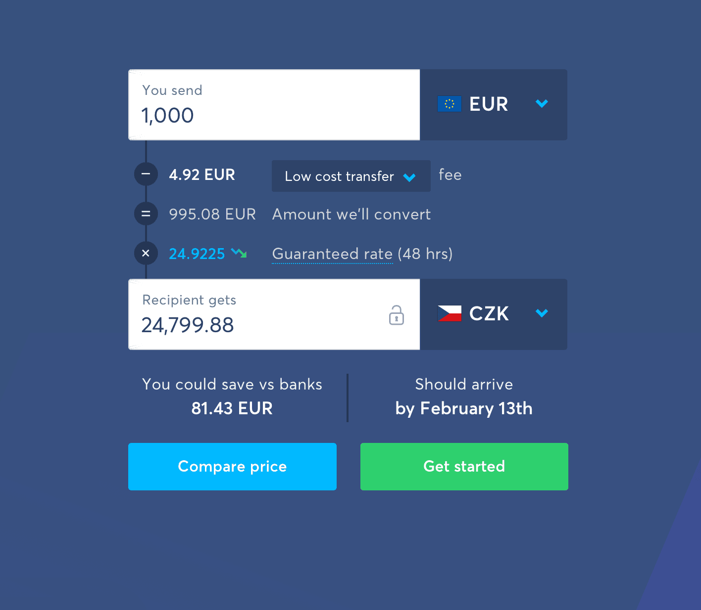 Okrem toho je pri vašich prevodoch na 48 hodín garantovaný stredový trhový kurz, opäť výhodnejší, než aký ponúkajú banky pri transakciách z jednej meny do druhej.