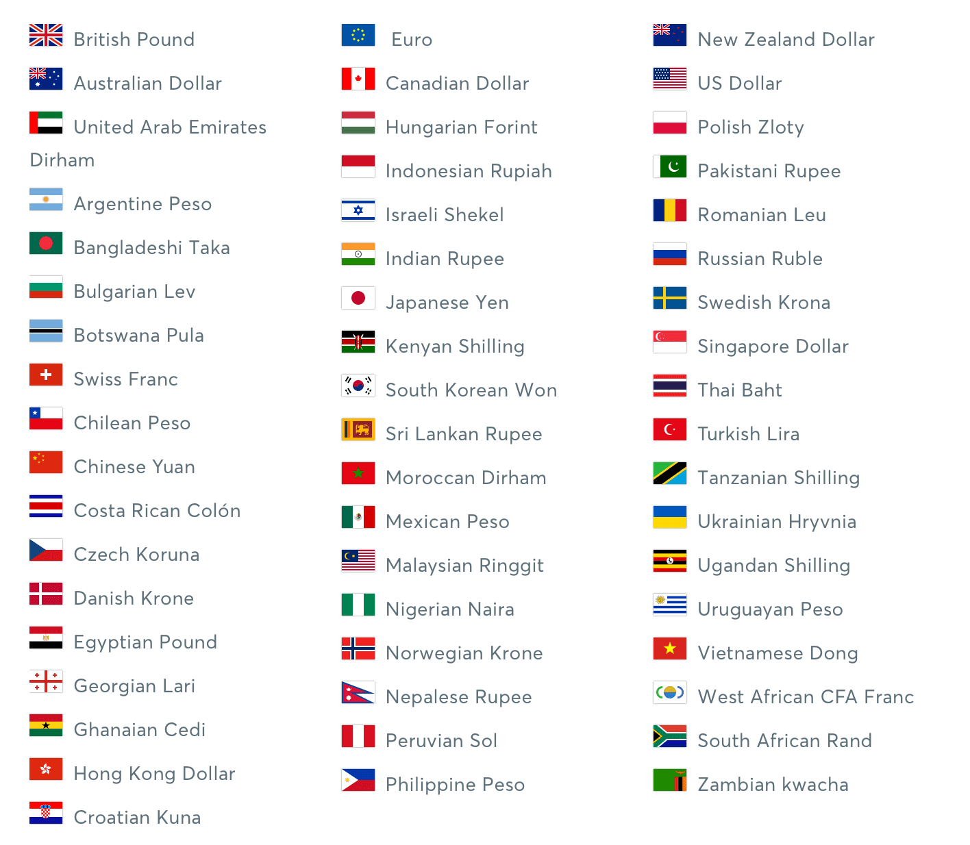 Momentálne sú dostupné tieto meny: